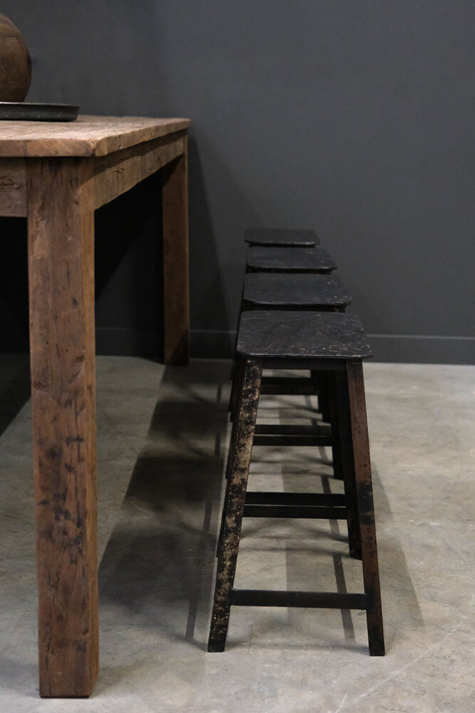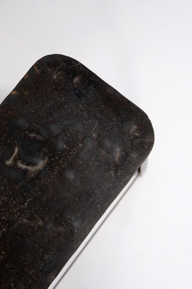 Silkeborg skammel – en cool upcycled siddeløsning i 100% jern. Sædet på denne skammel er fremstillet af genanvendte køreplader, der tidligere har tjent deres formål i Indiens industriområder. Denne genbrugte karakter tilfører ikke kun et rustikt touch, men fortæller også en historie om genanvendelse og respekt for materialernes rejse. Skammelen er ikke blot et praktisk siddemøbel, den er også ideel til planter, bøger, en lampe eller andet spændende. Giv dit rum et unikt præg med denne Silkeborg skammel.