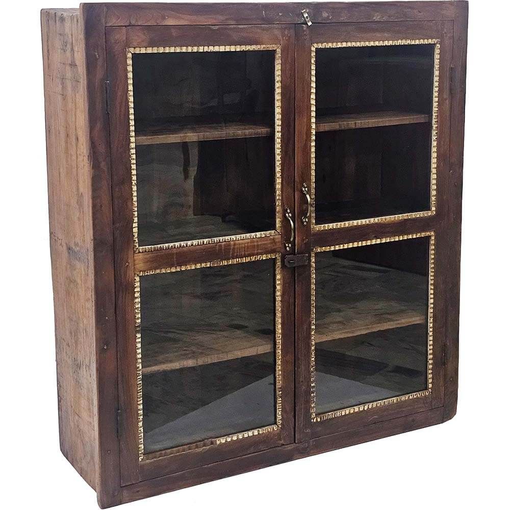 Dette skønne vægskab i træ har en klassisk og enkel stil, der bringer varme og personlighed til ethvert rum. De to glaslåger gør det perfekt til at fremvise dekorative genstande, glas eller porcelæn, mens træets naturlige patina og de diskrete lystmalede detaljer omkring lågerne tilføjer karakter og autenticitet. Brug det i køkkenet til opbevaring af smukke køkkenting, i stuen som en del af en vintage-indretning, eller som en praktisk og stilfuld løsning i en café eller butik. Dette vægskab tilføjer masser af charme og historie, samtidig med at det giver god opbevaringsplads og fremhæver dine yndlingsting på en elegant og enkel måde. Skabet har beslag bagpå til ophæng.