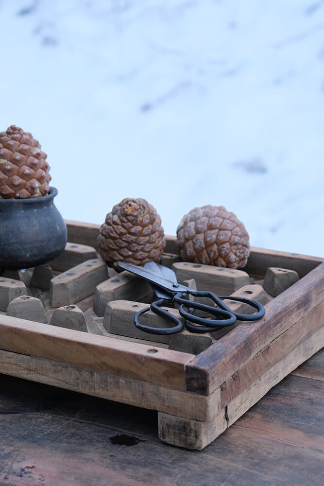 Tænk at noget så praktisk som en saks, kan være så smuk. Saksen har det skønneste mørke håndtag som er udformet på smukkeste vis. Klingen er af jern og skræddersaksen har en god klippekvalitet. Når du ikke bruger saksen til at klippe med, vil den være så fin at lade pynte på et fad eller hæng den på en krog til pynt.