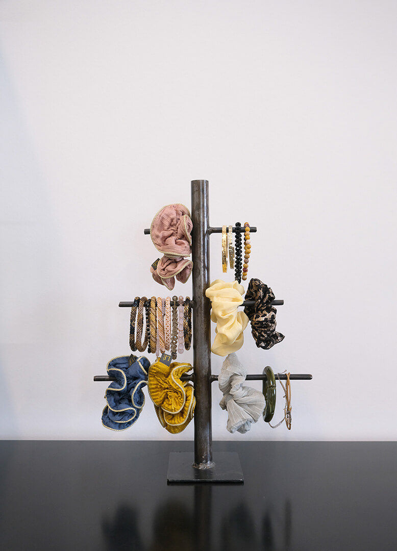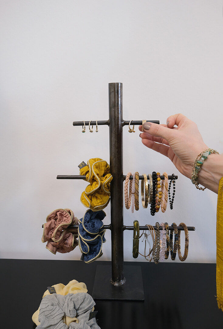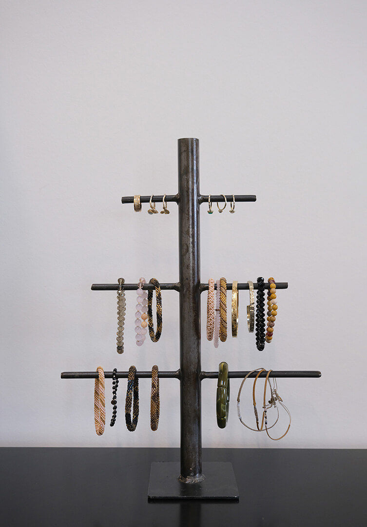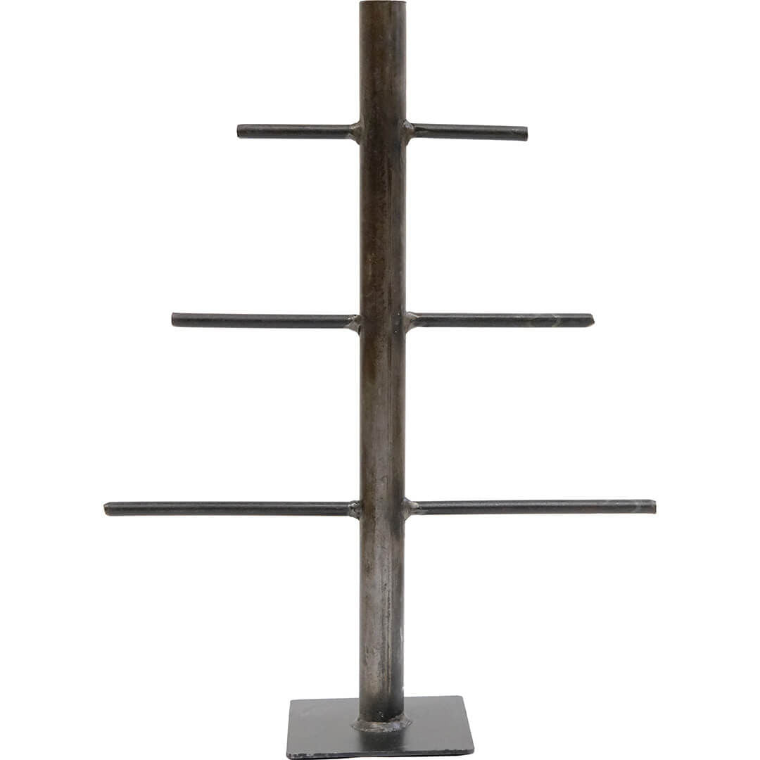 Minimalistisk og råt smykkestativ i jern. Dette cool smykkestativ kan bruges til alle dine smykker og ure. Stativet kan give dig et godt overblik over alle dine yndlingssmykker. Du kan også bruge stativet som en rå nøgleholder. I én periode af året kan du give smykketræet en helt anden funktion som et råt og flot juletræ. Hæng små klokker eller andet julepynt på stativet eller bind årstidens små grene med gran eller mos for at skabe et autentisk julet look.