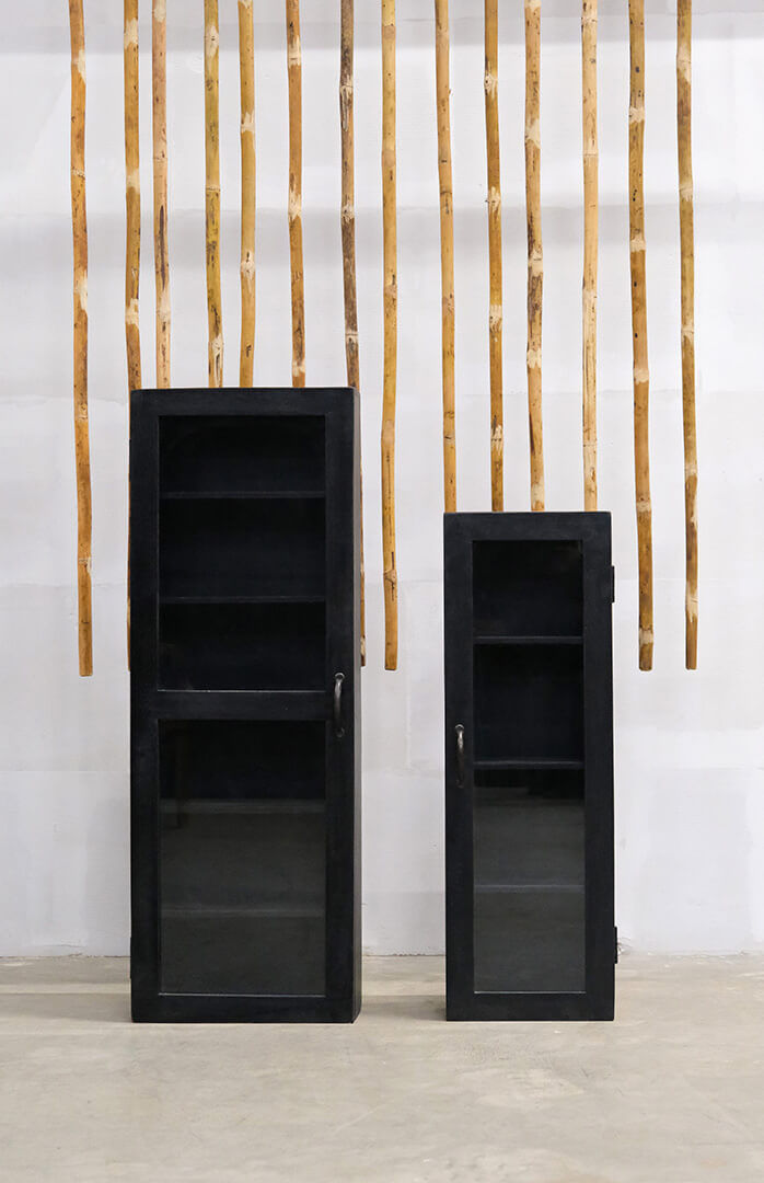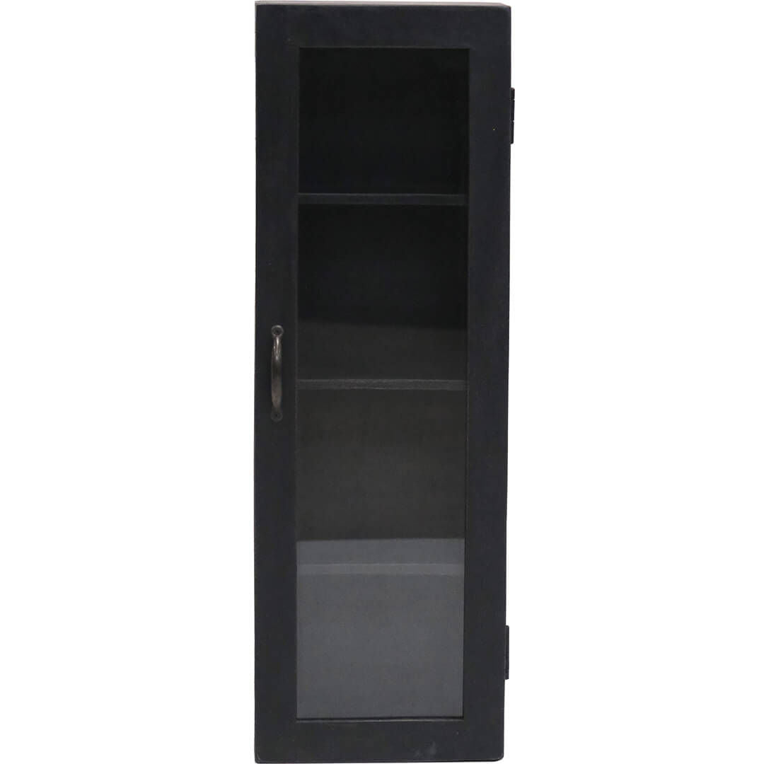Savner du mere opbevaringsplads i din indretning?! Så er det altid et hit med et vægskab. Her finder du et lille fikst et af slagsen. Vægskabet er fremstillet i træ som er malet sort. Skabet har en glaslåge og fire indvendige hylder. Designet er helt enkelt og stilrent og vil egne sig godt i de fleste rum i din indretning pga. sin lille, praktiske størrelse. Her har du mulighed for at opbevare og udstille dine ting på fornemmeste vis. Skabet findes også i en højere model: D0909. Afstanden mellem hylderne er 21 cm.