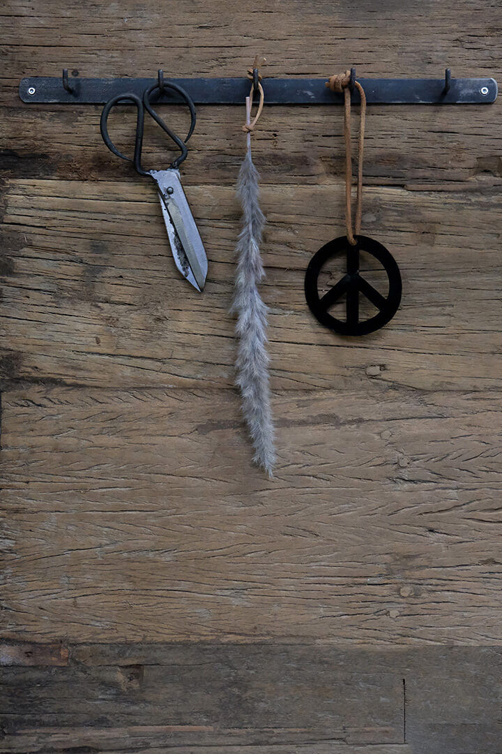 Helt enkel knagerække med fem kroge i pulverlakeret jern i et minimalistisk design i en flot rustik finish. En super praktisk løsning, der kan placeres i alle mulige rum for at få styr på tøj, tekstiler eller dekorationer. Denne knagrække findes også med 3 kroge. Se M15158.