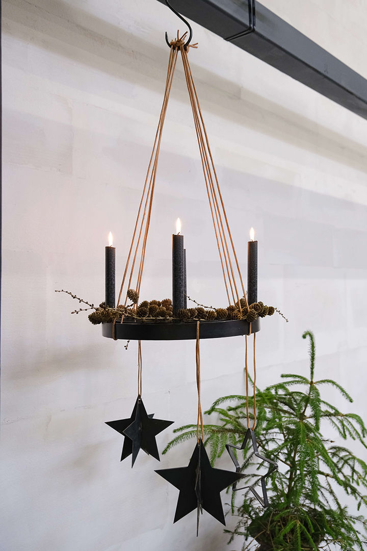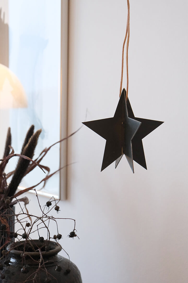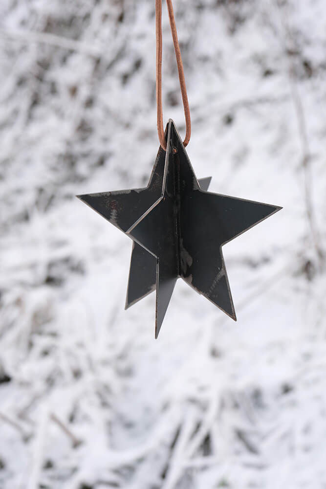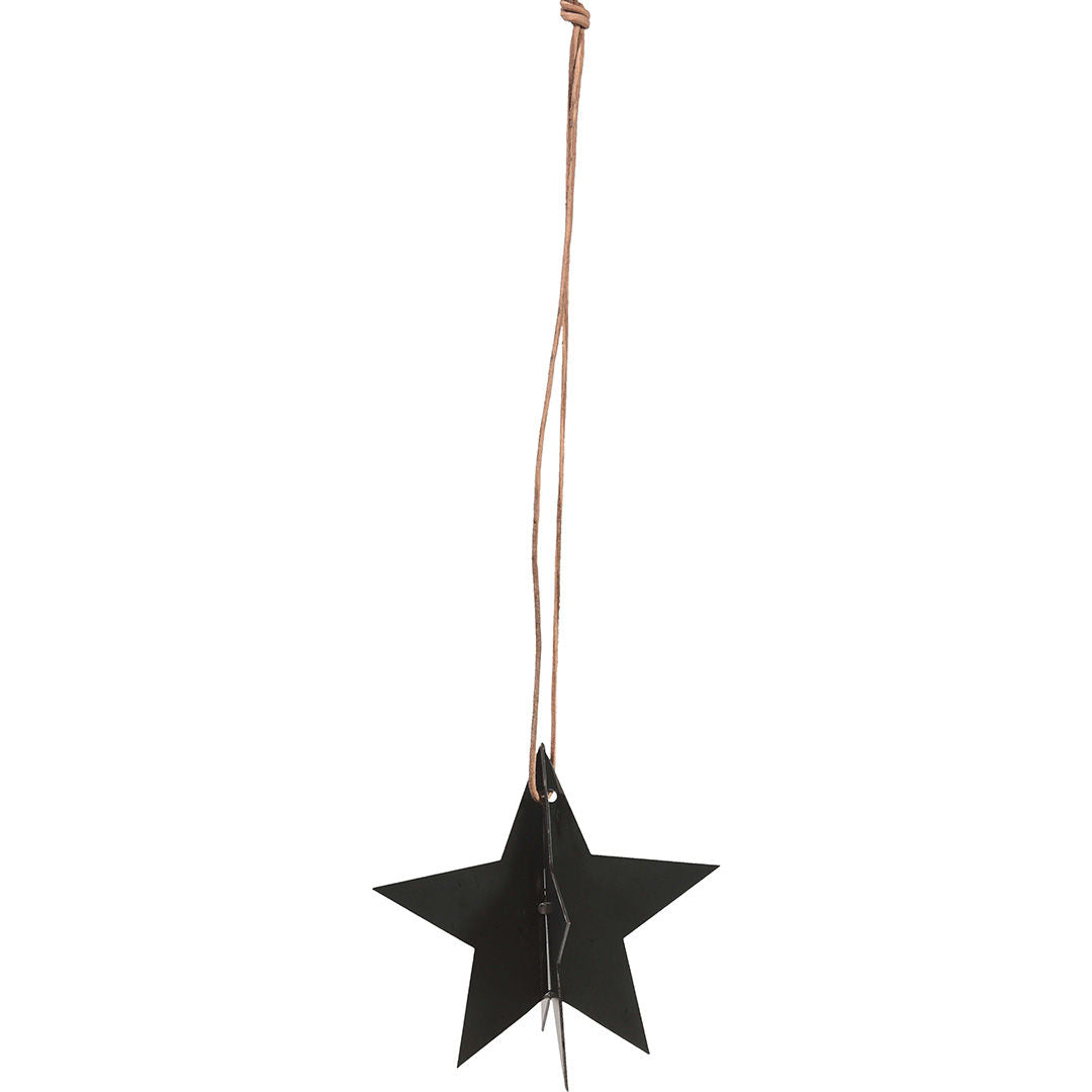 Dekorativ stjerne fremstillet i jern, med en 40 cm. lang medfølgende lædersnor til ophæng. Det vil se smukt ud at hænge flere sammen. Brug den både hjemme og i din business. Vil tage sig flot ud i dine butiksvinduet, i din stue eller i foyeén i din restaurant.