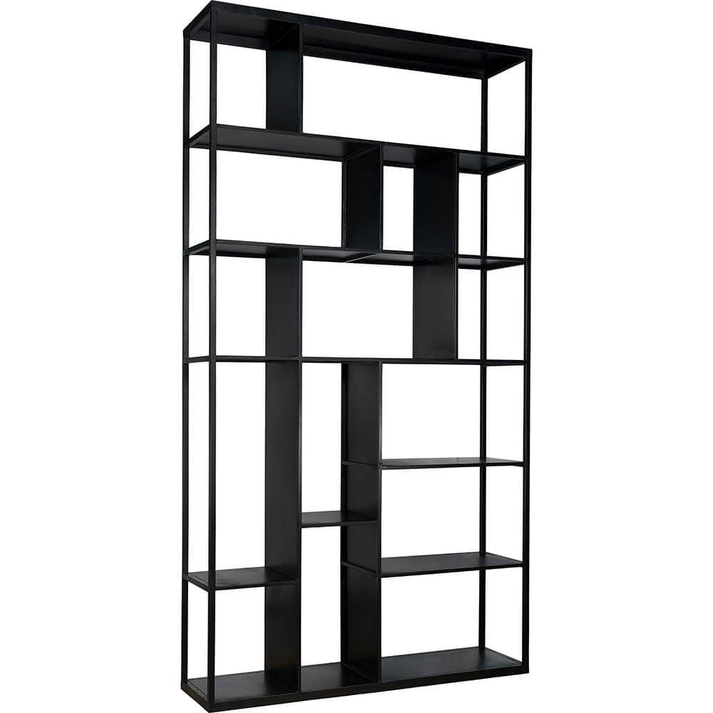 Denne imponerende og gigantiske sorte reolvæg i jern er et ægte statement-møbel. Med en højde på over 3,5 meter kræver den højt til loftet og stjæler opmærksomheden i ethvert rum. Reolvæggen har et minimalistisk og moderne look med asymmetriske hylder. Det robuste jern og den sorte finish giver reolvæggen et industrielt udtryk, perfekt til store rum som kontorer, butikker eller som en dramatisk skillevæg i en restaurant eller bolig. Her får du masser af plads til at vise bøger, kunst, planter eller dekorative genstande – kun fantasien sætter grænser!