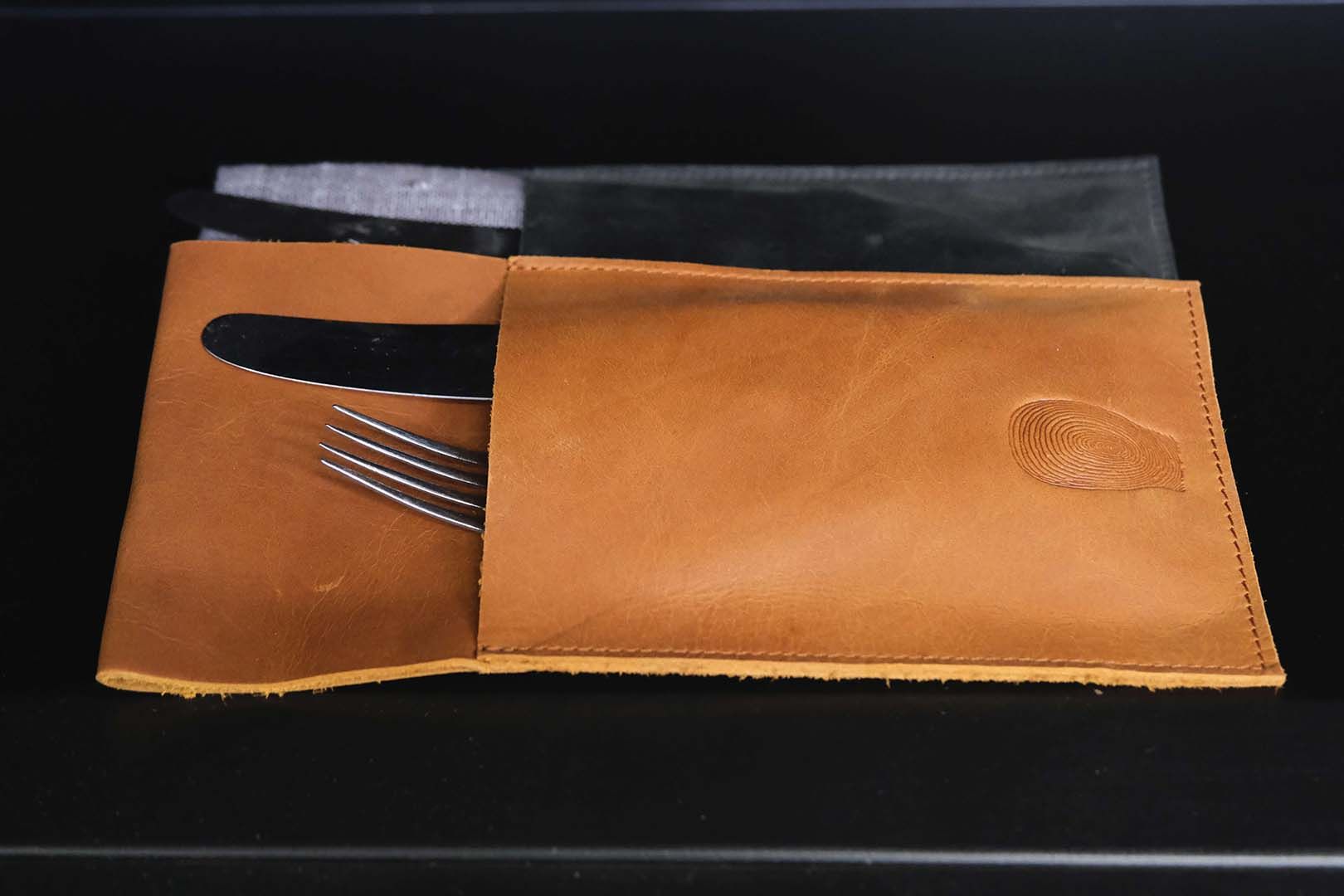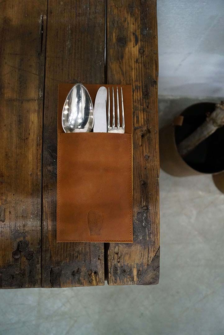 Bestikpose i et stilrent design. Bestikposen der er fremstillet i lækkert bøffelskind vil tilfører borddækningen et eksklusiv look. Læder etuiet er også særdeles velegnet til pensler, makeup, sakse og skriveredskaber. Du kan sætte den i dit buksebælte og så er den mobil.