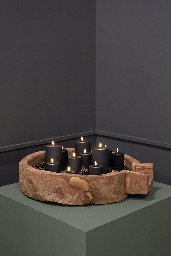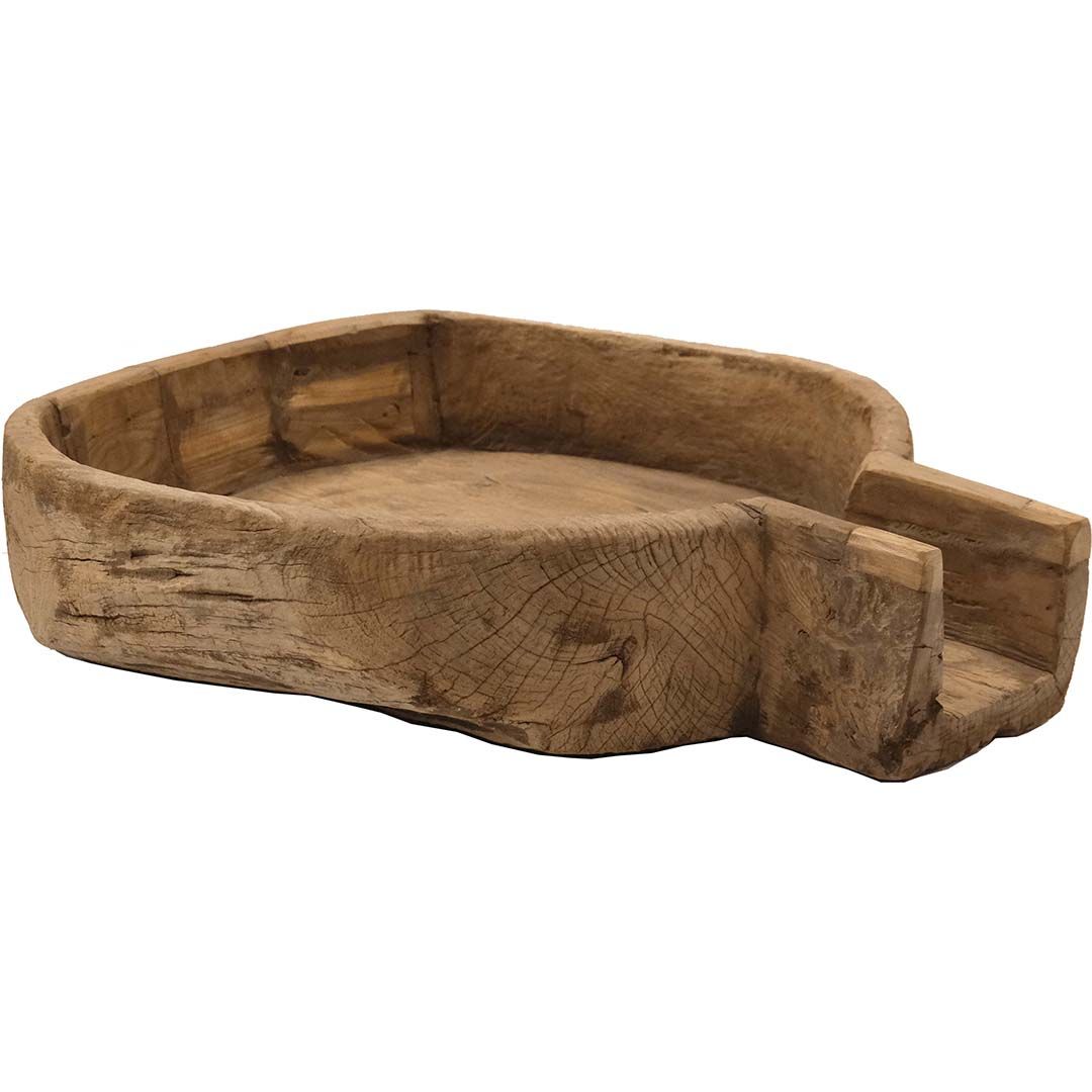 Her får du noget ud over det sædvanlige. Et fantastisk smukt og rustikt stort gammelt træfad. Træfadet er oprindeligt brugt til at male mel i. Med dette store træfad kan du i den grad skabe et blikfang i din indretning. Brug faddet til opbevaring af dine boligmagasiner og bøger, fyld det med forskellige størrelser bloklys eller brug den til opbevaring af dine plaider. Det er meget sjældent, at vi er heldige at finde så store unikas med så flot en finish. Du kan se, at de har stået ude i både regn og tørke, det afsløres tydeligt i de aftegninger der er i træet. Hvert enkelt træfad er unik i form, finish og størrelse.