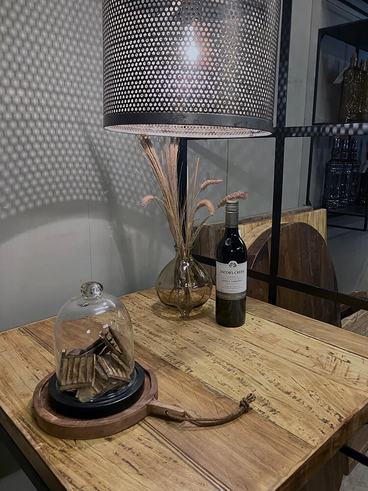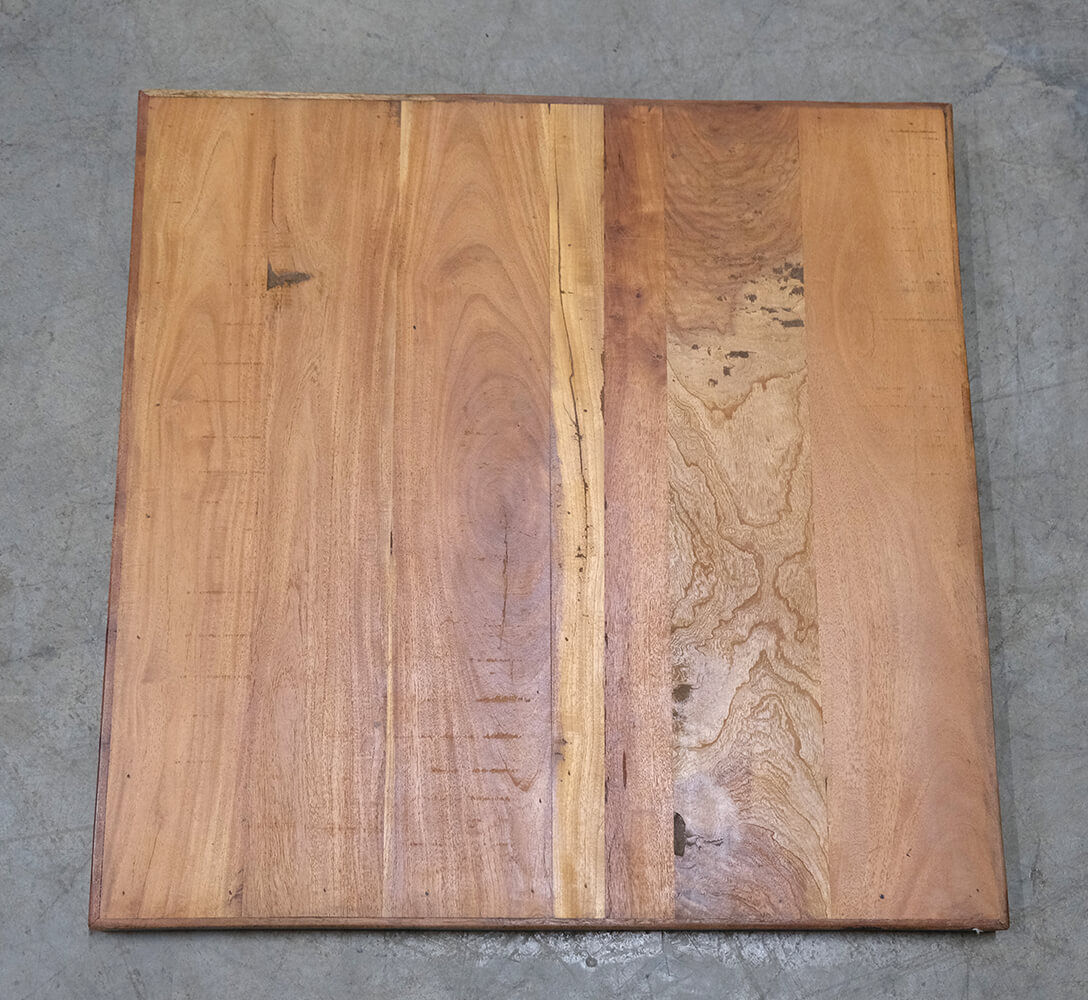 Lys, kvadratisk træbordplade. Bordpladen er lavet af patineret genbrugstræ. Pladen er blevet sandblæst og behandlet med en mat lak. Da pladen er lavet af genbrugstræ, vil farvenuancen variere fra bordplade til bordplade. Bordpladen passer til de fleste af vores stel.
