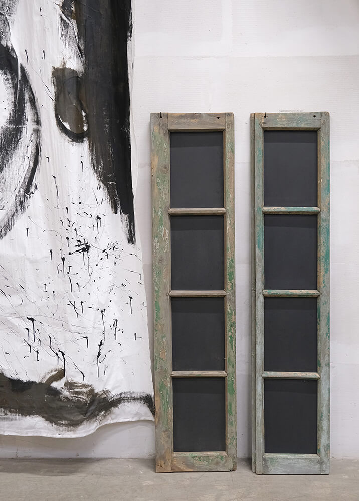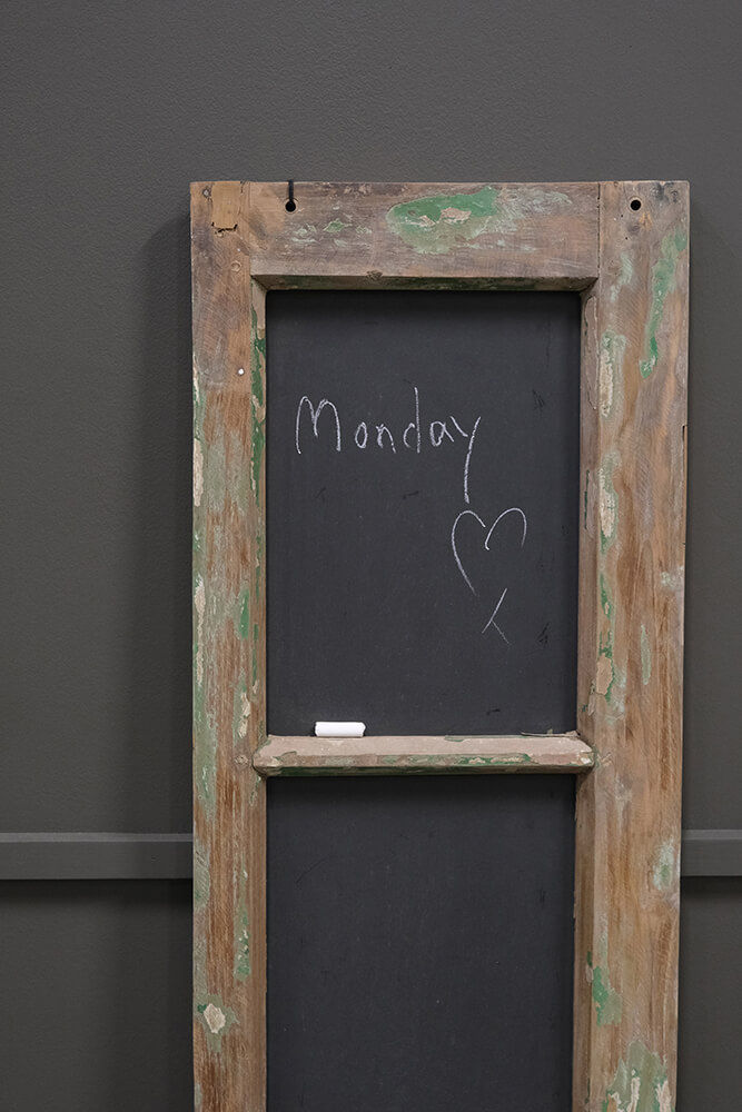 Denne fine tavle er lavet af en gammel vinduesramme, som har fået nyt liv. Den rå træramme med spor af patina og tidligere maling giver tavlen et charmerende, vintage udtryk, der tilføjer sjæl til ethvert rum. De fire separate tavlefelter giver dig rig mulighed for at skrive noter, lave lister eller til små beskeder - perfekt til caféer, butikker eller hjemmet, hvor den kan bruges både praktisk og dekorativt. Med sit smalle, vertikale design passer tavlen nemt ind på væggen, uden at den optager for meget plads. Det er genbrug med stil og en lidt mere bæredygtig måde at tilføre din indretning noget helt særligt.