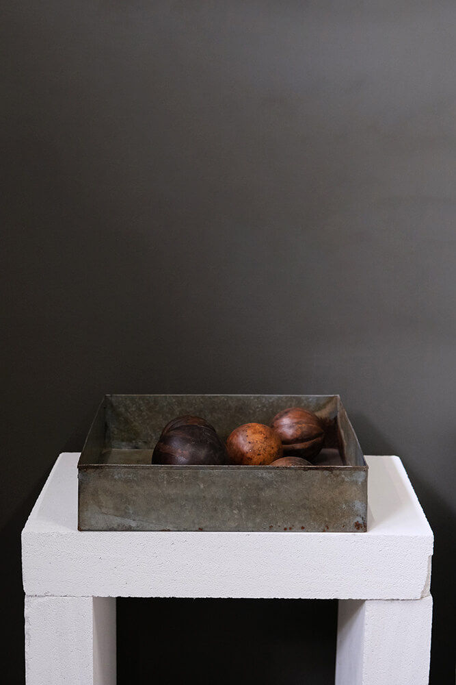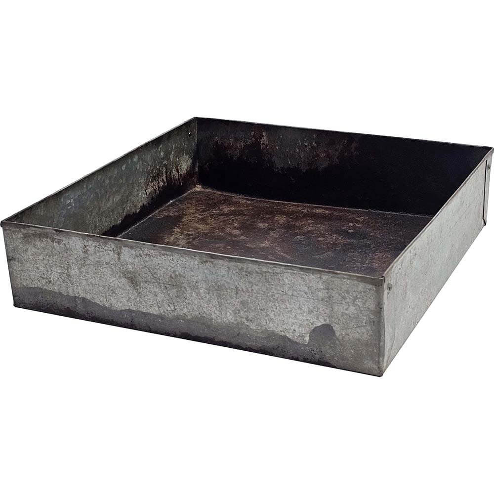 Denne store jernbakke er rå, robust og har en solid konstruktion. Med sin slidte overflade og mørke patina fortæller den en historie om mange års brug. Brug jernbakken som en praktisk opbevaringsløsning i køkkenet, hvor den kan rumme alt fra krydderier til olier, eller i stuen som en cool base for stearinlys og dekorative genstande. I en butik kan den skabe et råt display til små varer, og i en restaurant kan den bruges som en unik bakke til dine specialiteter. Mulighederne er mange, og uanset hvor du placerer den, vil den tilføre rummet et strejf af industriel charme.