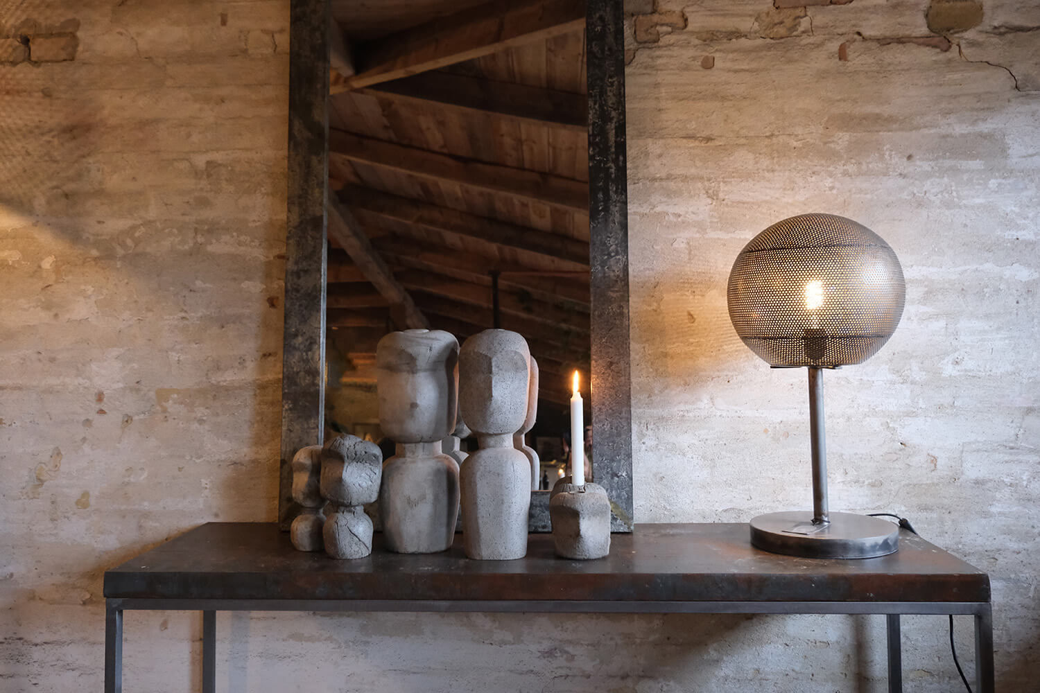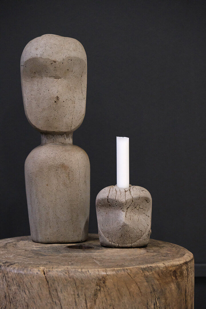 Flot lysestage til kronelys. Lysestagen, der forestiller et hoved, er skabt i en blanding af ler og cement, der giver et rustikt og stilrent look. Skab hygge med denne fine og rå stage, enten alene eller i samling af flere på et fad eller bakke. Søg på Theo i søgefeltet, for at finde matchende skulpturer.