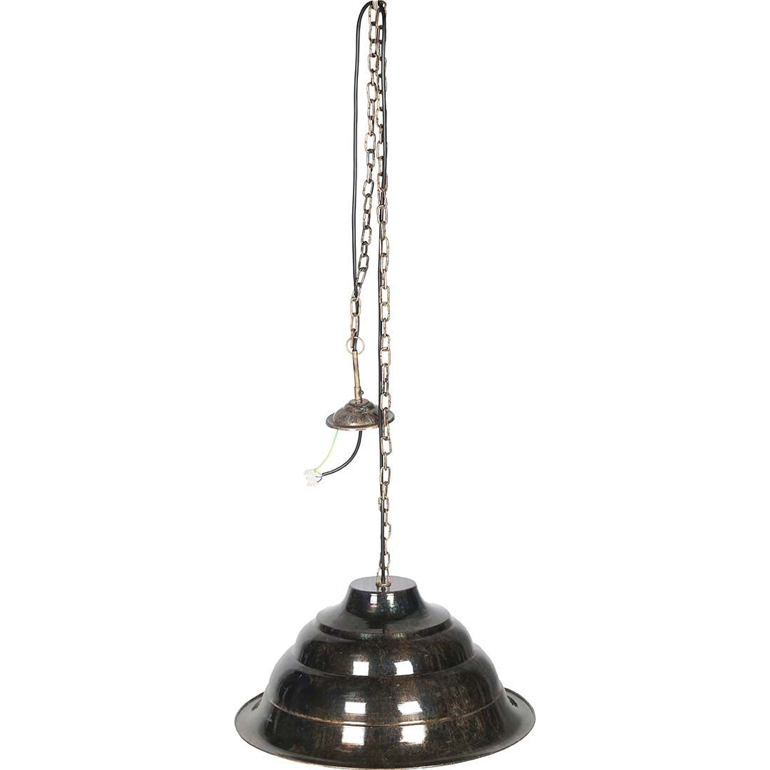 Industriel lampe med en organisk bølget form. Denne håndlavede lampe forvandler sig gradvist med sin skinnende overflade. Hæng den over et spisebord eller i stuen, det vil virkelig skabe en fin atmosfære.