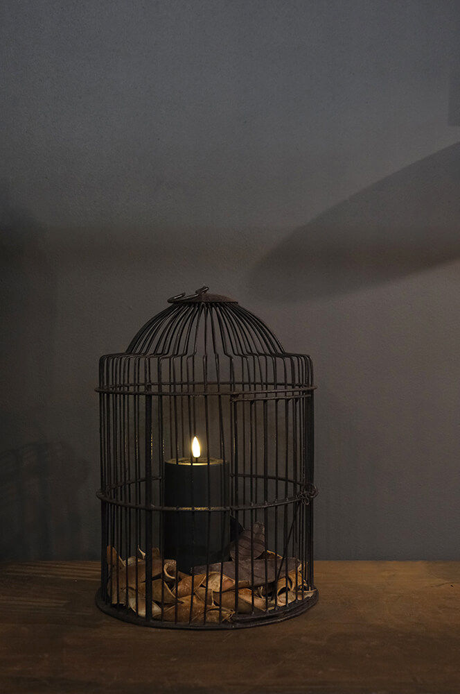 Dette dekorative fuglebur i jern tilføjer et strejf af vintage charme og industrielt præg til ethvert rum. Med sin robuste og rå konstruktion er det ideelt som dekoration, hvor det kan bruges til at skabe en hyggelig stemning. Placer en lysestage, en kunstig plante eller små dekorative elementer inden i for at få en hyggelig, stemningsfuld belysning eller en anderledes visuel effekt. Buret har et autentisk, rustikt look og kan let kombineres med andre industrielle eller vintage-inspirerede dekorationer. Fugleburet kan også hænges op i krogen og du kan dermed skabe en fin stemning i højden.