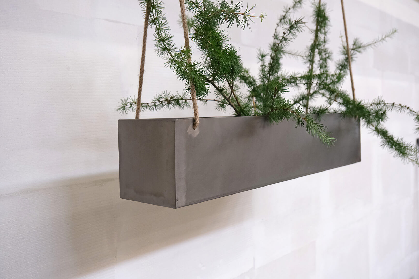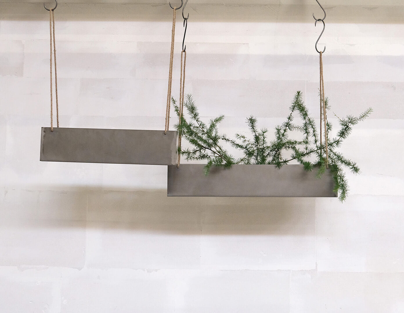 Her har du et sæt plantekasser bestående af to rektangulære kasser i et råt design. Plantekasserne er fremstillet i pladejern og monteret med reb i begge ender af hver plantekasse, så de kan hænges op. Skab en naturlig atmosfære med planter hængende ned fra loftet eller ud fra væggen. Du kan også gå linen ud og bruge kasserne til en anderledes og kreativ champagnekøler hængende ned over bordet i din cafe eller restaurant. Det er vigtigt, at du installerer en form for indsats i plantekasserne, da de ikke er vandtætte. Large: H: 15cm x W: 80cm x D: 15cm Small: H: 15cm x W: 60cm x D: 12cm