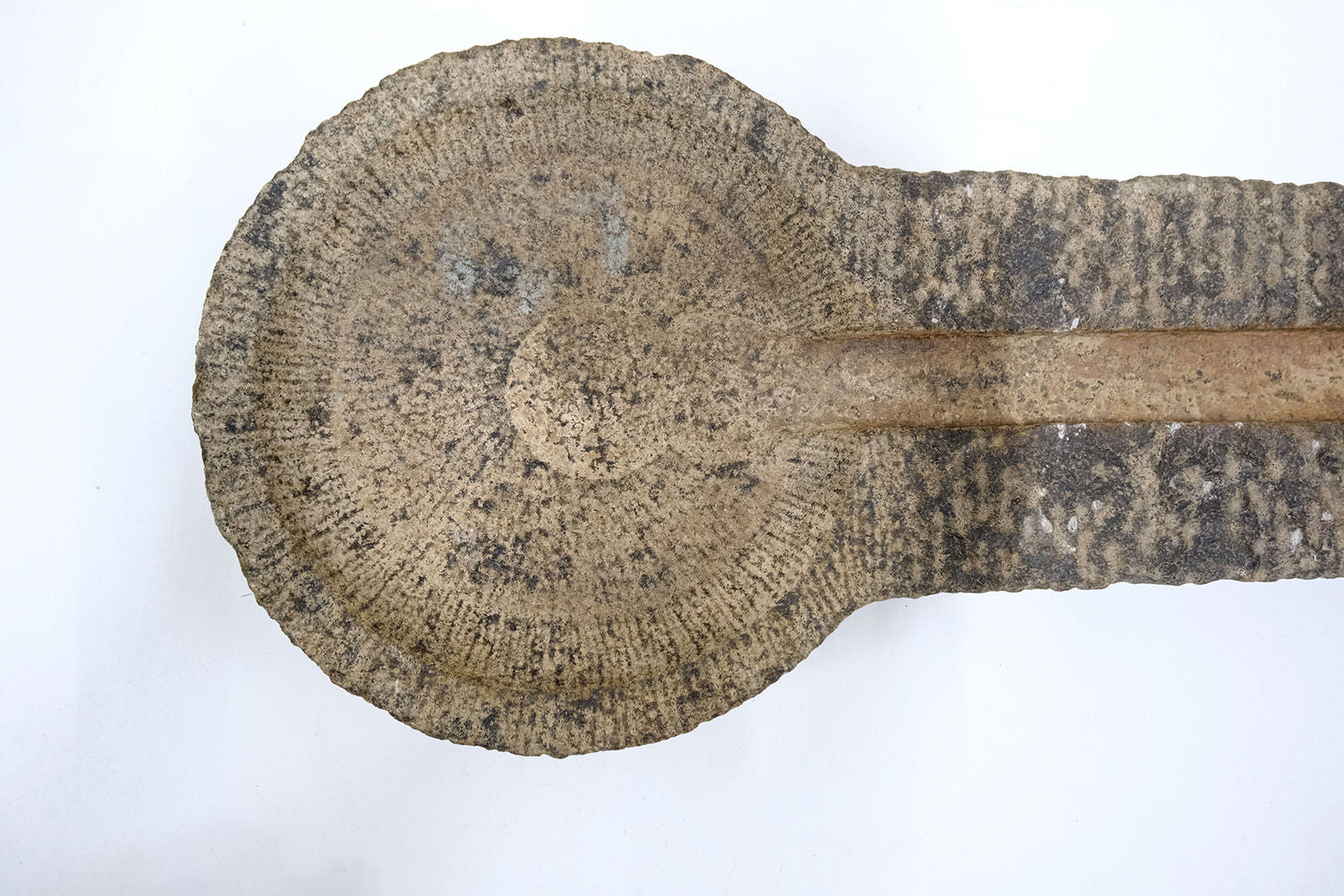 Denne unikke originale sten til ”vandløb” har hjulpet en indisk familie med at føre vand væk fra deres hus. Udover at være ret funktionel med sine 183 cm, har de fantastiske indere også brugt tid og kræfter på at dekorere stenen med små riller. Det vil helt sikkert være en dekoration, som du ikke lige finder hos naboen. Brug vandfaldsstenen som en unik udsmykning i din have eller til vandløb i dit havebassin. Kun fantasien sætter grænser.
