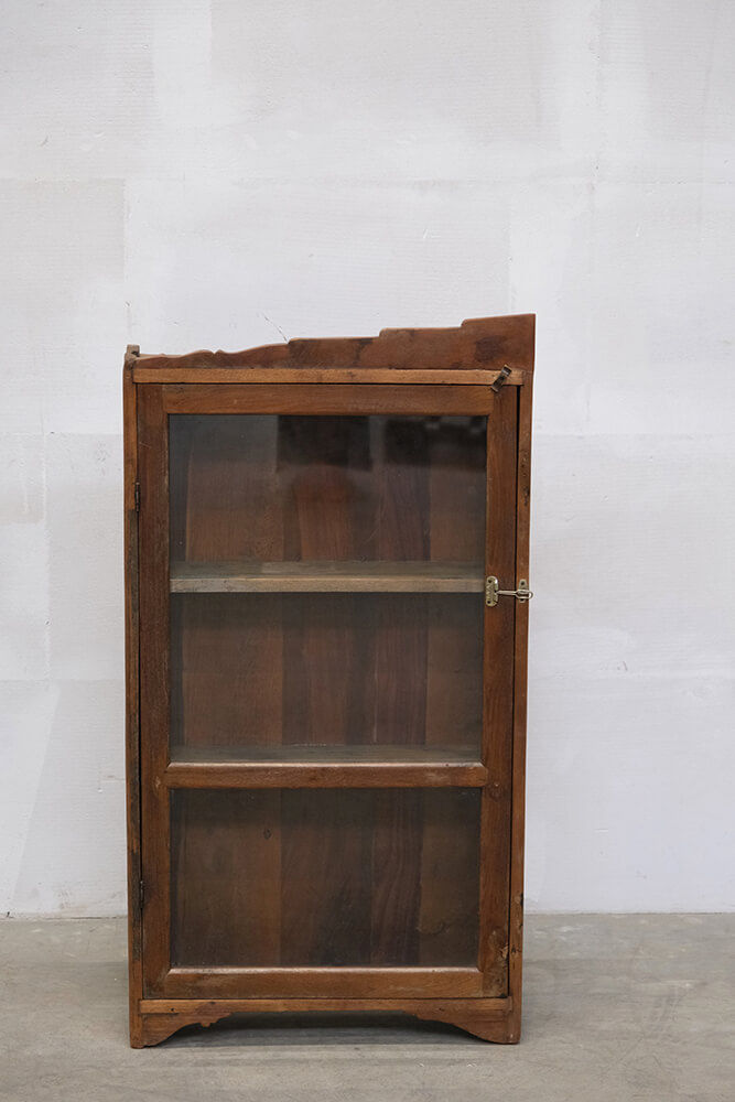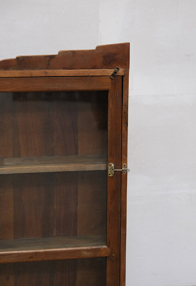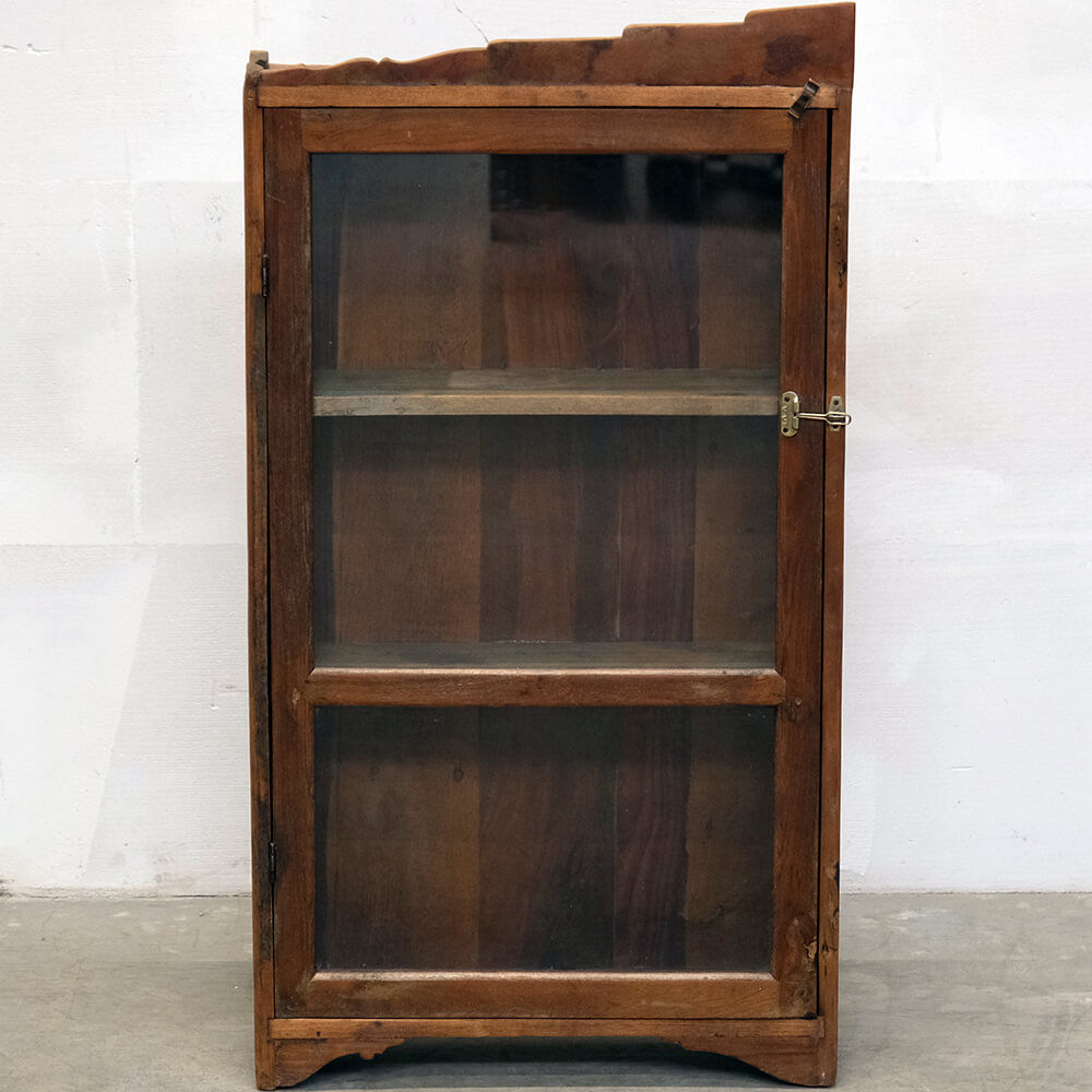 Dette vægskab har en autentisk charme og masser af historie. Med sin slidte træramme og enkle glaslåge viser det tydeligt tegn på et langt liv fyldt med oplevelser. De rå kanter tilføjer karakter til ethvert rum, mens de indvendige hylder giver dig en praktisk opbevaringsløsning til dine mest skattede genstande. Et møbel, der ikke stræber efter perfektion, men som med stolthed fremhæver sin rustikke stil og unikke detaljer. Ideelt til dig, der værdsætter genbrug og indretning med sjæl og kant.