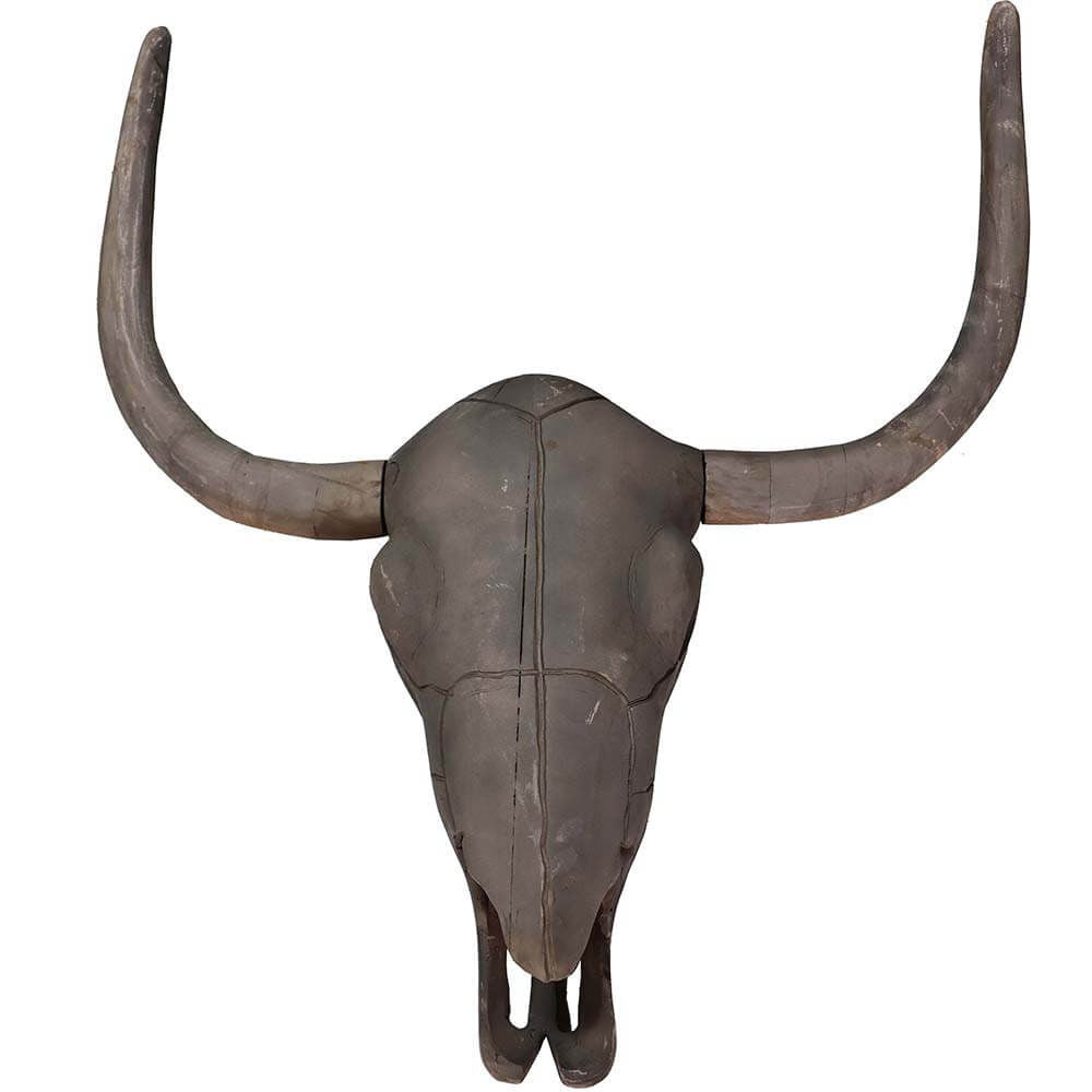 Dette imponerende bøffelhoved er en fantastisk vægskulptur af genbrugstræ, der virkelig bringer naturens skønhed ind i din indretning. Med sine dramatiske horn og slidte finish er denne figur et dekorativt blikfang. Hæng bøffelhovedet op i mandehulen eller din restaurant, og lad det være et maskulint vægophæng, der tilføjer dybde og karakter til rummet. Skallen har en flot mørk patina og detaljer, der gør den helt særlig.