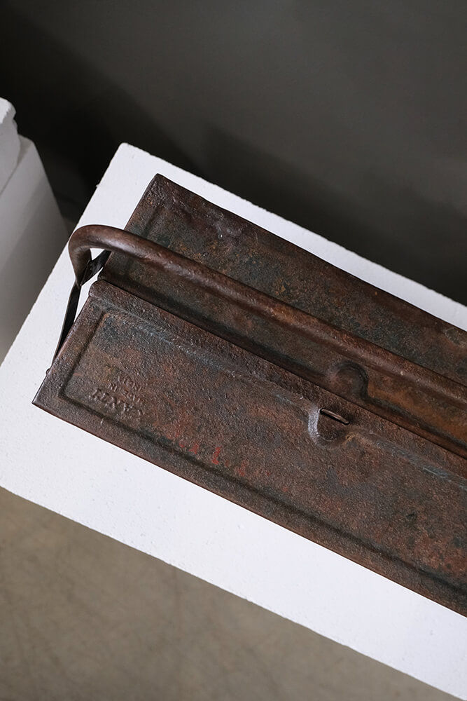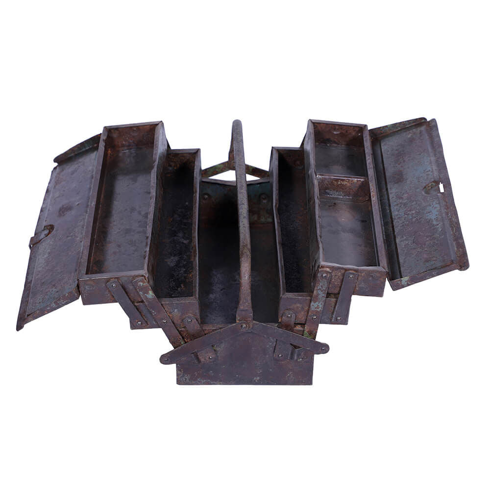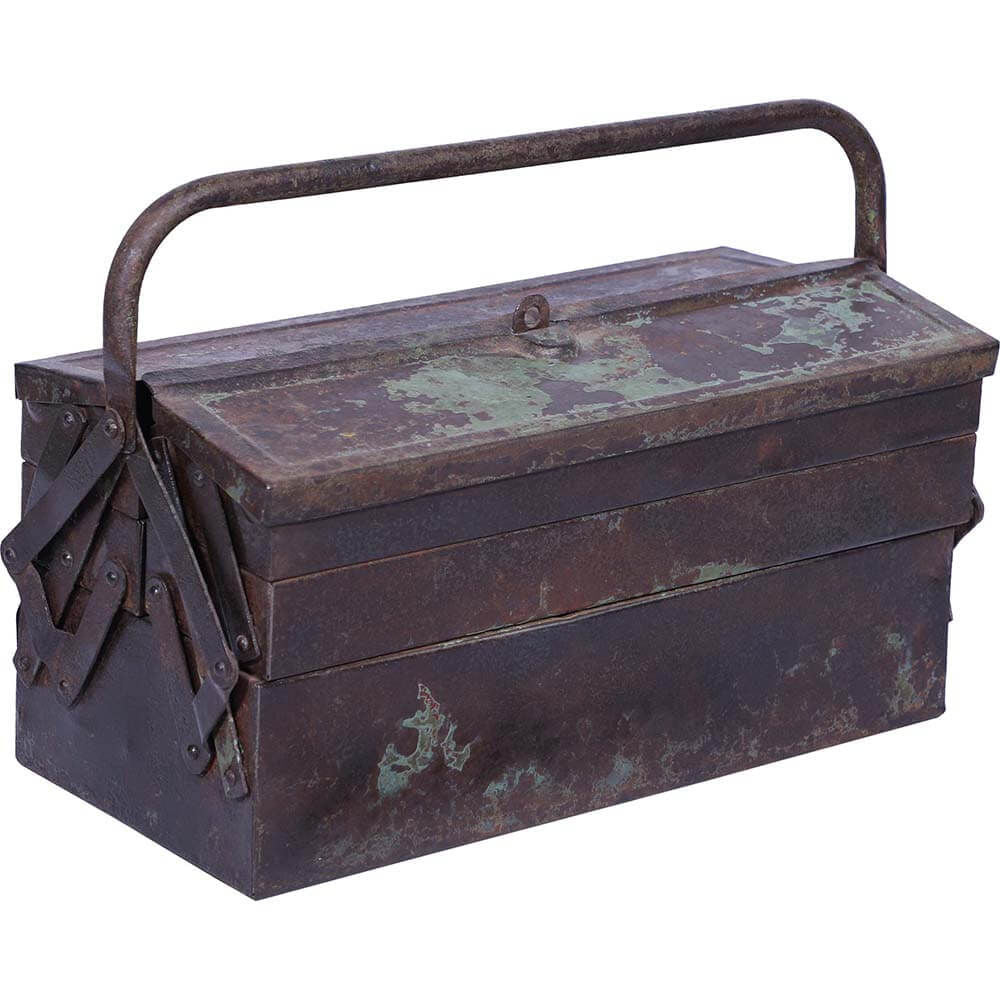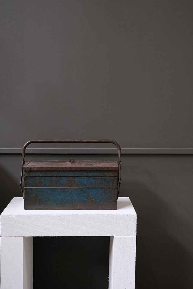 Gammel industriværktøjskasse i jern, med en slidt patina. Værktøjskassen er super cool til opbevaring af små ting og til at skabe et personligt udtryk. Alle værkstøjskasserne er forskellige i størrelse og udtryk.