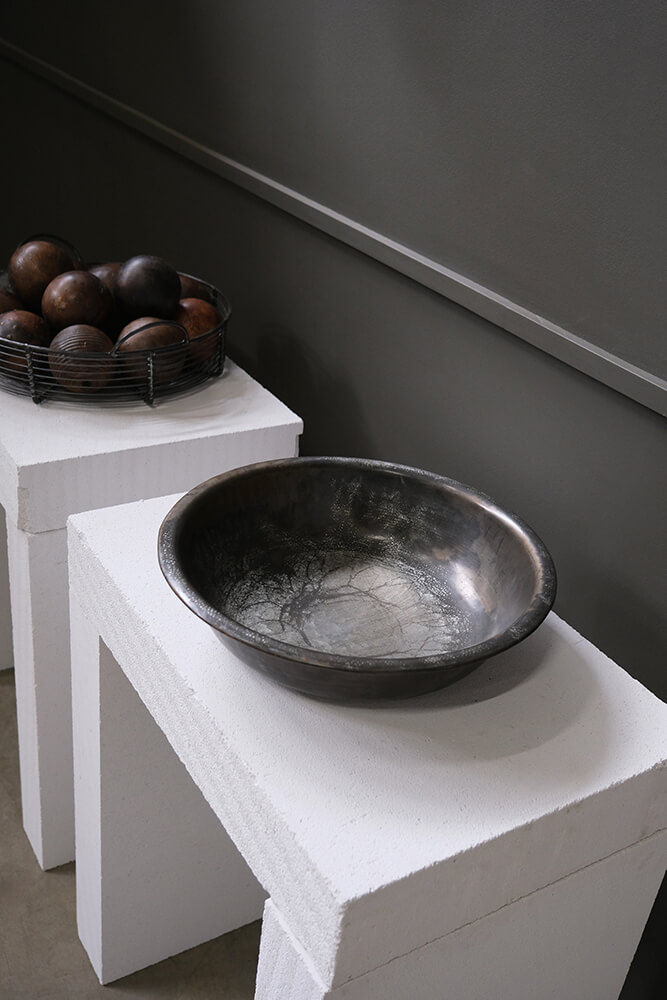 38 cm stor rund og rustik skål i klarlakeret jern. Brug den flotte og rå skål til planter eller som vandbad i din have. Du kan også sagtens bruge skålen indendørs til dekorationer, nips eller bare lade skålen pynte i sig selv. Skålene er delvist lavet i hånden, så hver skål vil være unik i sit udtryk.