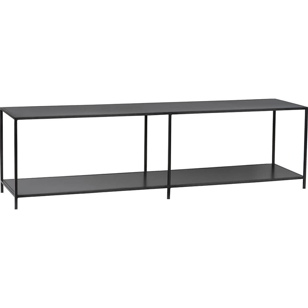 Smal sortmalet jernreol. Den smalle, aflange form gør reolen ideel som en tv-bænk eller et lavt konsolbord. Den holdbare jernkonstruktion kombineret med det minimalistiske design giver et tidløst udtryk, der passer ind i enhver indretningsstil. Brug den til opbevaring, bøger eller dekorative elementer. Med vores jernreol tilføjer du både funktionalitet og stil til din indretning. Denne reol findes i fire andre udgaver. Søg efter Washington i søgefeltet. Afstanden mellem hylderne er 37 cm.