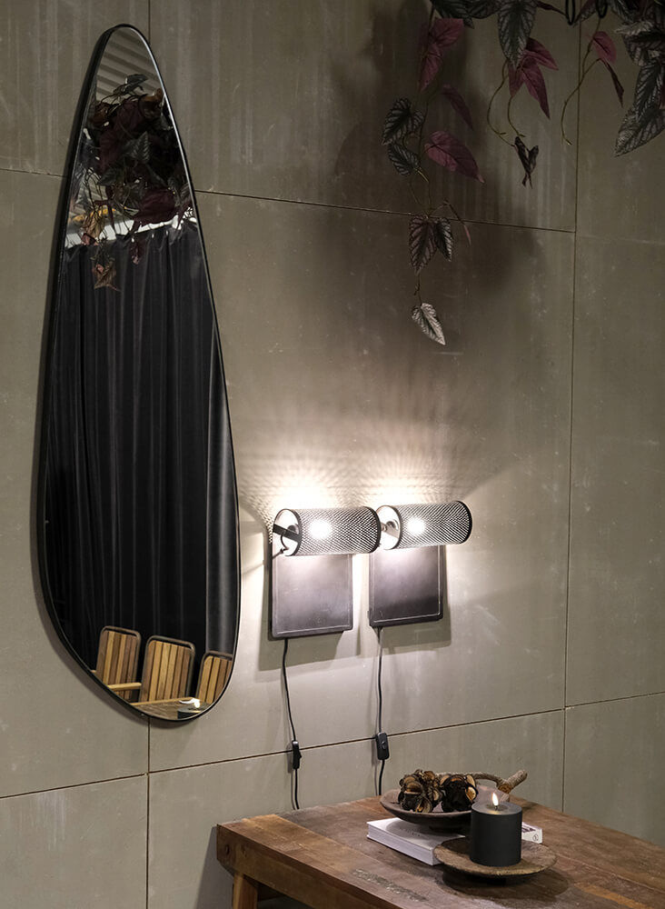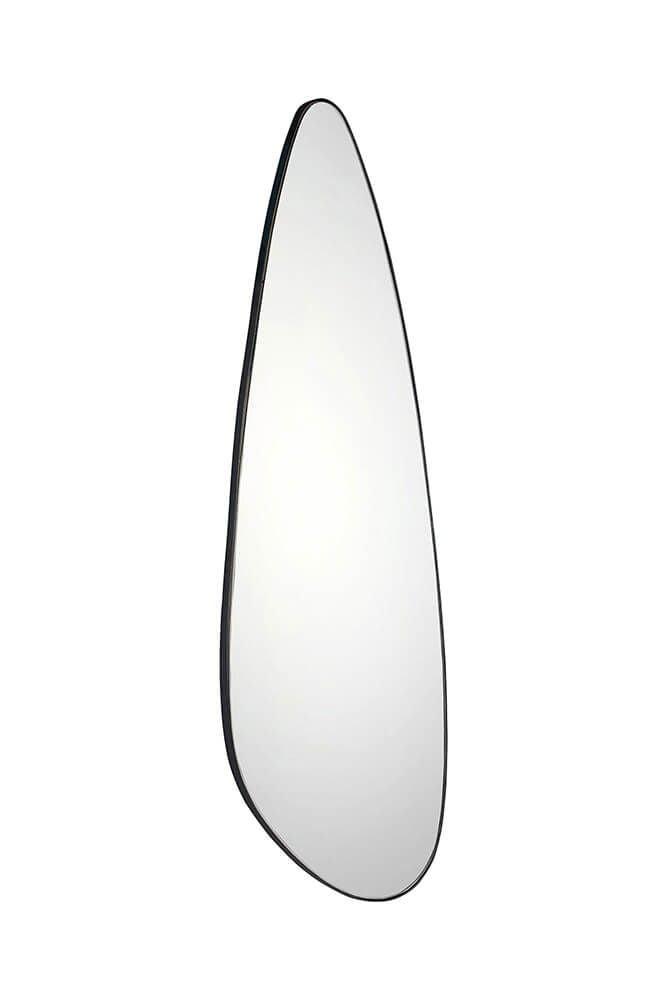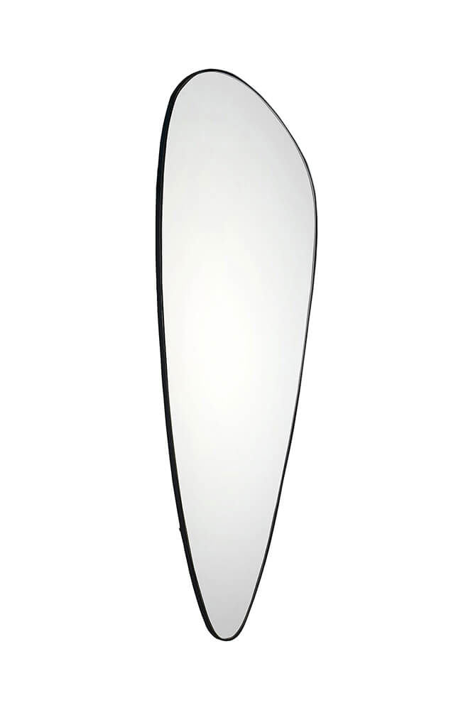 Dette spejl har en anderledes, asymmetrisk form og en minimalistisk ramme i jern, der giver det et moderne og let udtryk. Den simple jernramme omfavner spejlets organiske linjer, hvilket gør det til et ideelt valg til en indretning, der værdsætter enkle og stilfulde detaljer. Perfekt til at skabe dybde og lys i rummet, fungerer dette spejl lige godt i hjemmet, butikken eller cafeen.