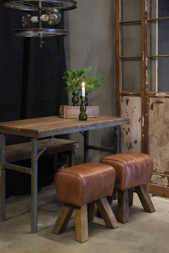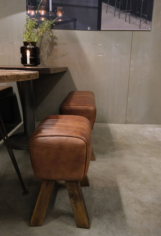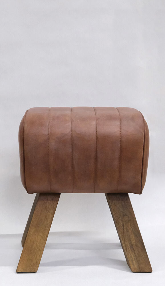 Denne lille Wilma skammel, inspireret af den klassiske "gymnastikbuk," har en skøn finish af quiltet brunt læder og massive træben. Skamlen emmer af et cool og gennemført "old school" look, der tilføjer et rustikt og råt præg til indretningen. De solide træben sikrer stabilitet og holdbarhed, mens det bløde læder med sin varme, brune farve bringer både komfort og charme. Perfekt som en praktisk skammel i gangen, en stilfuld detalje i stuen, eller som en unik siddeplads i butikken eller caféen. En lille, men markant tilføjelse til indretningen, der kombinerer funktion og karakter.