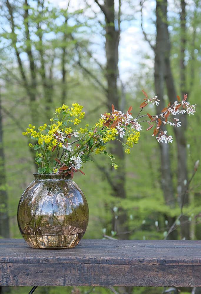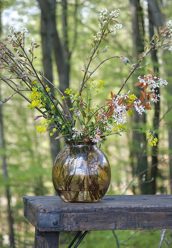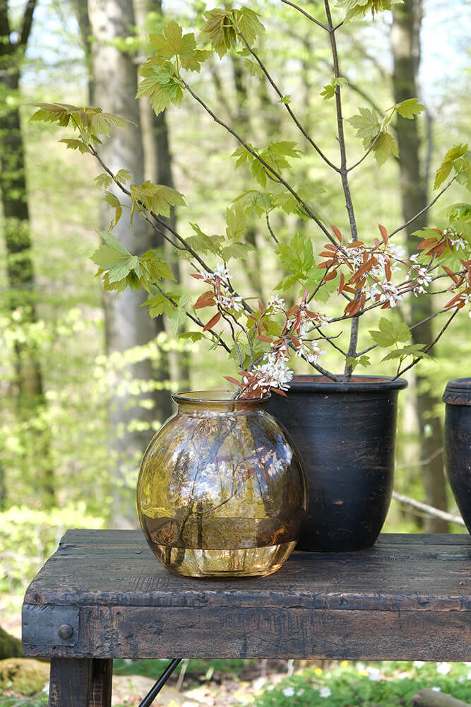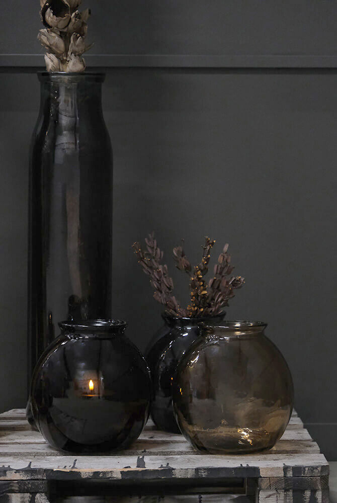 Tilføj lidt ekstra stemning med denne vase af genbrugsglas. Vasens buttede form og røgfarvede nuance, gør den til et charmerende lille indretningssupplement. Glasvasen kan også bruges til små LED-lys eller blomster, hvis du ønsker at skrue op for hyggen.