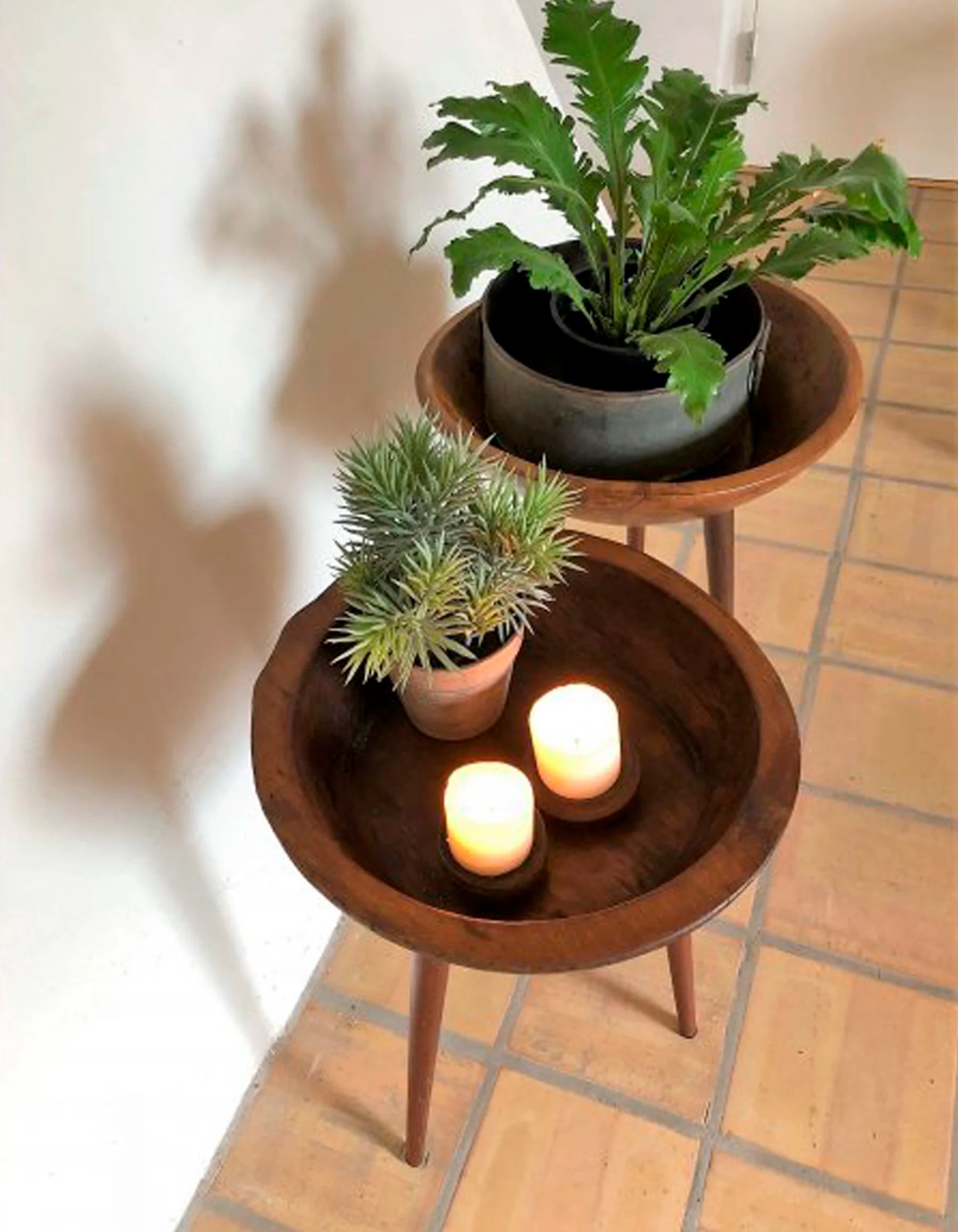 Stor lækker træskål upcycled med ben i træ. Meget dekorativ som sidebord.